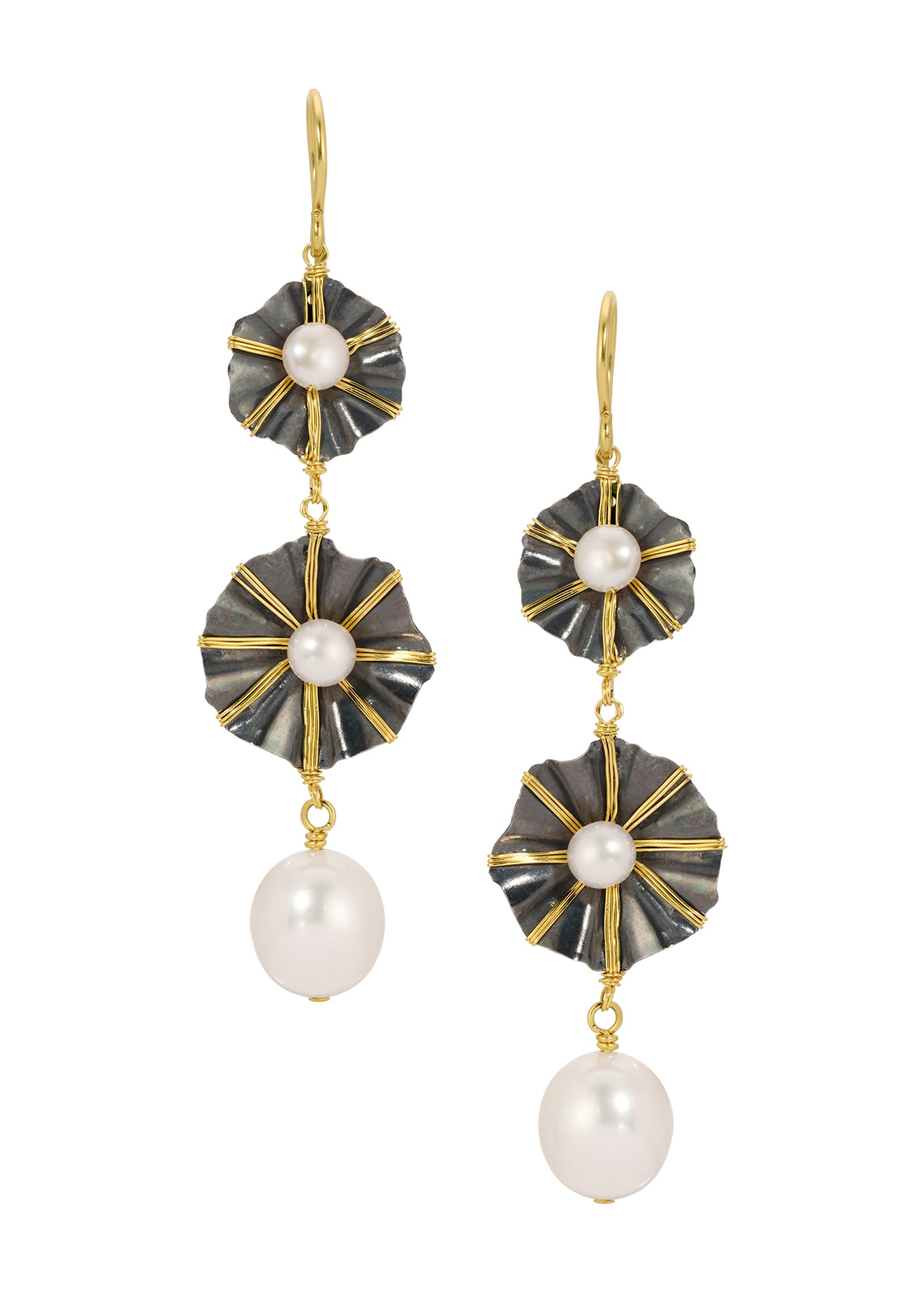 MORNING GLORY DOUBLE DROP EARRINGS IN MIXED METAL